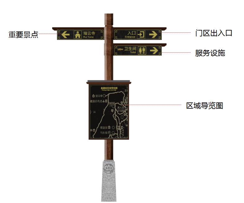 在旅游景区空间中,我们通常将标识系统分为景区外部标识系统和景区内部标识系统。本篇文章为大家解读5A景区该如何设计内部标识系统。